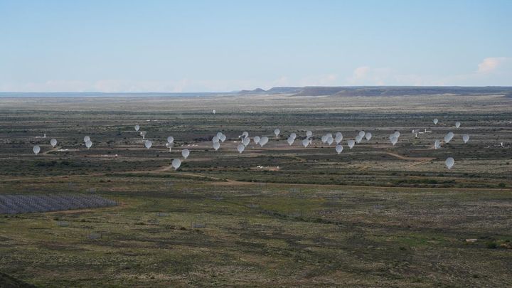 Les premières antennes de SKA-MID dans le désert du Karoo (Afrique du Sud). (GABRIEL PORROMETO)
