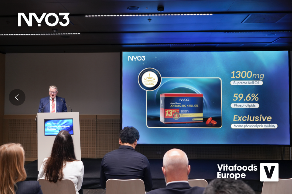 Tous ces produits ont été exposés à Vitafoods Europe 2024 en Suisse. Simultanément s'est tenue la conférence mondiale de lancement de la nouvelle marque NYO3. Le nouveau produit NYO3 Royal-boost Antarctic Krill Oil a été lancé. Chaque capsule contient jusqu'à 1300 mg d'huile de krill. Grâce à l'utilisation d'une technologie exclusive et innovante de solubilité dans l'eau (solubilité des phospholipides marins), le taux d'absorption s'en trouve considérablement amélioré.