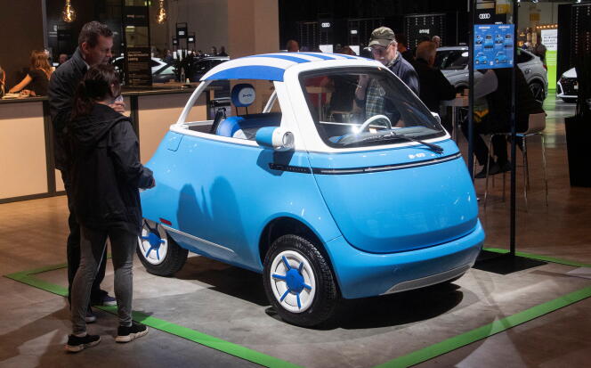 Un prototype de voiture électrique Microlino Spiaggina du fabricant suisse Microlino AG est présenté au salon de l’automobile Auto Zurich (Suisse),le 10 novembre 2022. ARND WIEGMANN / REUTERS Dès qu’il a appris que la douane italienne avait bloqué des Topolino,les petites voitures sans permis de Fiat,à la frontière parce qu’elles portaient un drapeau tricolore alors qu’elles sont fabriquées au Maroc,Wim Ouboter a fait ajouter une marque vert-blanc-rouge sur les ailes de ses Microlino. Contrairement au petit véhicule du groupe Stellantis,version italienne de la Citroën Ami,sa micro-voiture électrique est fabriquée de A à Z à Turin.