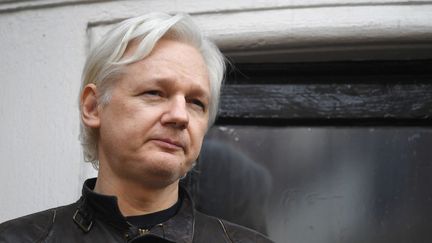 Julian Assange s'exprime sur le balcon de l'ambassade de l'Équateur à Londres,le 19 mai 2017. Photo d'illustration. (JUSTIN TALLIS / AFP)