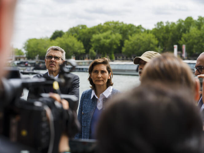 Amélie Oudéa-Castéra (au centre) lors d’un test technique de la flotte pour la parade des athlètes,le 17 juin à Paris. TERENCE BIKOUMOU POUR « LE MONDE » A trois semaines des Jeux olympiques de Paris et à trois jours du second tour des élections législatives,c’est un rebondissement judiciaire dont Amélie Oudéa-Castéra se serait volontiers passée. Selon une information de l’Agence France-Presse,confirmée par Le Monde,la Cour de justice de la République (CJR) a ordonné,jeudi 4 juillet,le renvoi en procès de la ministre des sports pour « diffamation publique envers un particulier » à la suite d’une plainte déposée,le 24 avril 2023,par l’ex-président de la Fédération française de football (FFF),Noël Le Graët,82 ans.