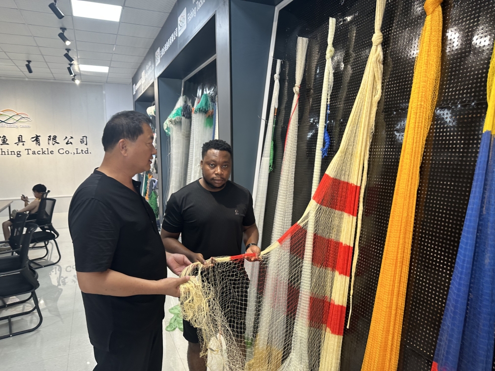 Accompagné par le président Yang Jinhai, M. Shadrack a visité les ateliers de production, la zone d'exposition des produits ainsi que les bureaux de l'entreprise. M. Yang Jinhai a présenté en détail l'état actuel de la production, les innovations technologiques et les projets futurs de l'entreprise, en insistant particulièrement sur les réalisations et les avancées dans le domaine de la fabrication d'équipements de pêche. M. Shadrack a exprimé son admiration pour les équipements avancés et la gestion efficace de l'entreprise et a hautement apprécié la qualité des produits.