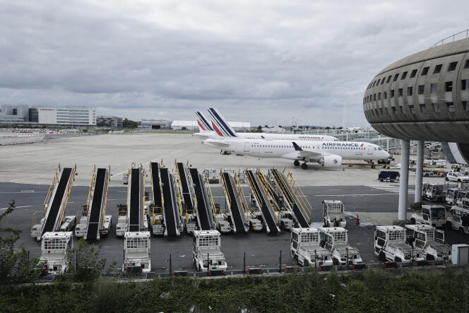 Des équipements d’assistance au sol (au premier plan) sont visibles sur l’aire de trafic à côté des avions d’Air France à l’aéroport Charles-de-Gaulle de Roissy-en-France,au nord de Paris,le 23 juillet 2024,avant la cérémonie d’ouverture de Paris 2024. STEPHANE DE SAKUTIN / AFP Air France a décroché la médaille d’or des compagnies aériennes. Mais ce sera bien la seule ! Pendant les Jeux olympiques (JO),elle a largement devancé ses concurrentes et transporté un tiers des accrédités vers les Jeux de Paris 2024. Un maigre lot de consolation car,comme le transporteur français et ses rivaux l’avaient prévu avant le démarrage de la compétition,les compagnies n’ont pas été à la fête pendant les JO.