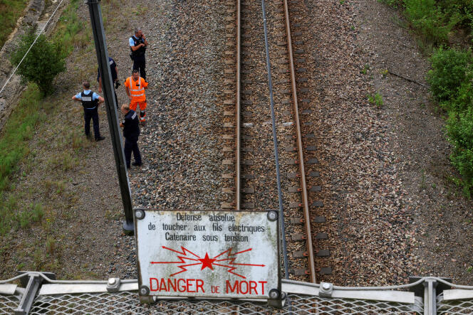 Des cheminots et des agents des forces de l’ordre travaillent sur le site où des vandales ont ciblé le réseau ferroviaire à grande vitesse,à Croisilles (Pas-de-Calais),le 26 juillet 2024. BRIAN SNYDER / REUTERS Une action coordonnée en différents points du territoire,à proximité de nœuds ferroviaires,dont les auteurs restent encore inconnus. La communication des services policiers et judiciaires reste plus verrouillée qu’à l’accoutumée au sujet de la vague de sabotages qui a touché trois points du réseau ferré la veille de la cérémonie d’ouverture des Jeux olympiques (JO),le jeudi 25 juillet,laissant craindre davantage qu’une paralysie momentanée de la circulation des trains. Les câbles de fibre optique assurant la transmission d’informations de sécurité pour les conducteurs ont été sectionnés et,pour certains,incendiés au niveau de postes d’aiguillage stratégiques à Courtalain (LGV Atlantique),Croisilles (LGV Nord) et Pagny-Sur-Moselle (LGV Est). Une autre action de ce type,intentée à Vergigny (Yonne),avait été déjouée sur la LGV Sud-Est grâce à des cheminots chargés de l’entretien nocturne du réseau.