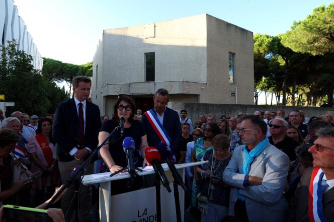 Sabine Atlan,présidente de l’Association cultuelle israélite de La Grande-Motte (Hérault),prend la parole devant la synagogue Beth-Yaacov,le 26 août 2024. PASCAL GUYOT / AFP L’attentat contre la synagogue de La Grande-Motte (Hérault) marque un tournant dans la longue série d’actes antisémites recensés en France depuis la séquence ouverte par l’attaque – accompagnée de massacres et de nombreuses exactions – du Hamas palestinien contre Israël,le 7 octobre 2023,suivie de la destruction de la bande de Gaza en représailles par l’armée israélienne. Ces actes antisémites ont crû non seulement en nombre mais aussi en gravité. Pour la première fois,il semble que l’intention d’El Hussein K.,l’Algérien âgé de 33 ans et suspecté de ce projet d’attentat,était de tuer des juifs.