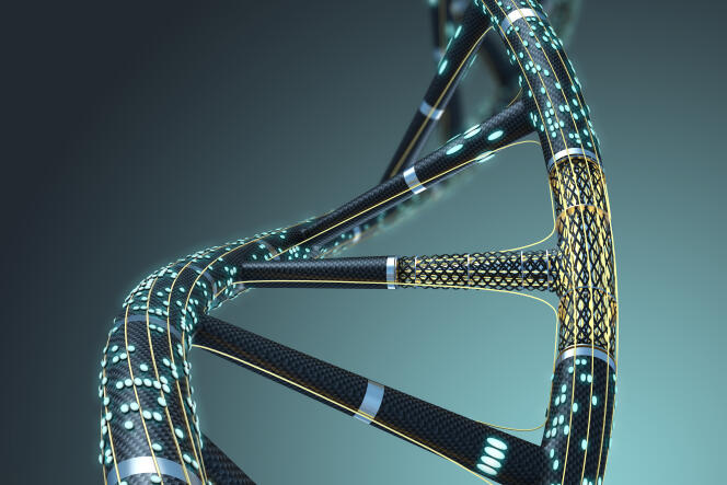 Vue d’artiste d’une molécule d’ADN synthétique créée par un programme de modélisation 3D,en 2016. LAREMENKO/ISTOCKPHOTO/GETTY Face à la production exponentielle de données numériques chaque année,et alors que les dispositifs de stockage actuels (disques durs,bandes magnétiques) ne parviennent plus à suivre le rythme,la piste du stockage moléculaire dans l’ADN synthétique semble prometteuse. Du moins,en ce qui concerne l’archivage de « données froides »,ces informations très rarement relues mais pour lesquelles il est essentiel de conserver une copie (actes notariés,documents juridiques,médicaux ou audiovisuels, etc.).