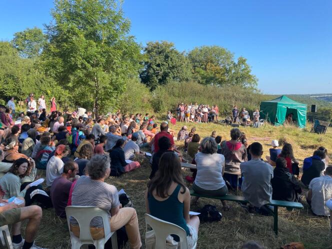 Eucharistie en plein air au Festival des poussières,à La Bussière-sur-Ouche (Côte d’Or),le 24 août 2024. Une foule de jeunes gens se presse devant les panneaux affichant le programme. Après le petit déjeuner et la prière du jour,l’heure est aux rendez-vous intellectuels. Les quelque cinq cents jeunes chrétiens présents au Festival des poussières,fin août,à La Bussière-sur-Ouche (Côte-d’Or),ont l’embarras du choix entre des conférences aux thématiques variées,telles que « L’idolâtrie spirituelle et politique » ou « La construction d’un antifascisme chrétien ». Un autre colloque attire l’œil par la simplicité et le sens des deux mots qui composent son intitulé : « Lutte et contemplation ».