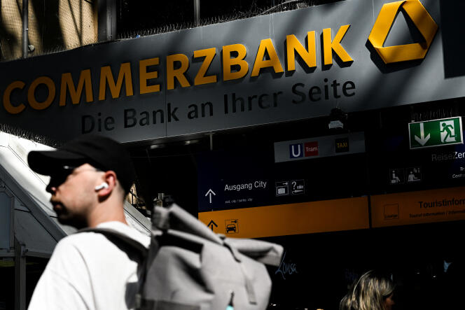 Une publicité de la Commerzbank à la gare centrale de Francfort-sur-le-Main,en Allemagne,le 6 septembre 2023. KIRILL KUDRYAVTSEV / AFP Lorsque le contrôle d’une grande banque est en jeu,la politique n’est jamais loin,surtout quand le prétendant est étranger. L’attitude du gouvernement d’Olaf Scholz à l’irruption spectaculaire de la banque italienne UniCredit au capital de l’allemande Commerzbank est donc scrutée de près. Or,selon la presse allemande,l’opération a pris Berlin de cours.