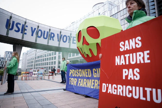Manifestation contre les pesticides,à Bruxelles,devant le Parlement européen,le 11 avril 2024. KENZO TRIBOUILLARD / AFP Incohérences,lacunes… Les conclusions du rapport de la Cour des comptes européenne consacré à l’agriculture biologique,publié lundi 23 septembre,pointent la faiblesse et le manque d’efficacité de la stratégie bruxelloise en la matière. Au point que l’objectif fixé d’atteindre 25 % des terres agricoles des Ving-Sept cultivées en agriculture biologique d’ici à 2030 « semble hors de portée »,estime l’institution.