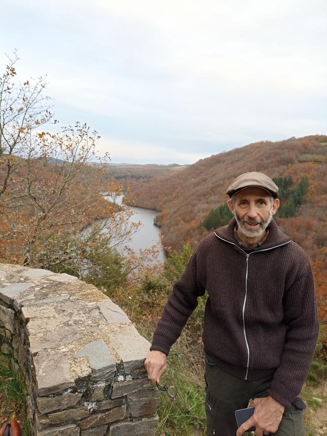 Photo personnelle de François Cassingena-Trévedy sur le plateau de Cézallier,dans le Cantal. DR Installé depuis 2021 sur le plateau de Cézallier,dans le Cantal,François Cassingena-Trévedy,65 ans,le décrit comme sa terre promise. « J’aime son silence,ce vide énorme,c’est un autre monde. Je vis à 900 mètres d’altitude sur une épine montagneuse,une terre émergée où le monde paysan survit. »