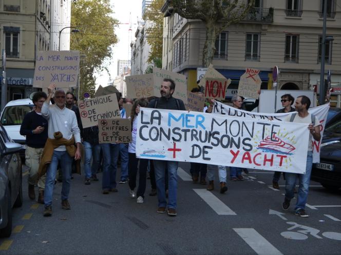 Une manifestation parodique en défense du gouvernement avec les slogans,« Bolloré,s’il te plaît,achète l’université ! » ; « La mer monte,construisons plus de yachts »,sur la place Guichard,à Lyon,le 10 octobre. AGATHE BARBOT A l’occasion de la Fête de la science,plus d’une centaine de scientifiques sont rassemblés sur la place Guichard,le 10 octobre. « Faut-il arrêter la recherche académique ? »,lance un animateur dans le cadre d’un « débat mouvant »,où les participants sont amenés à répondre en se déplaçant à gauche ou à droite du maître du jeu. Massivement,les chercheuses et chercheurs vontvers… le « oui » ! Idem en réponse à la question : « Les sciences ont-elles une responsabilité importante dans la catastrophe écologique ? » Que se passe-t-il ?