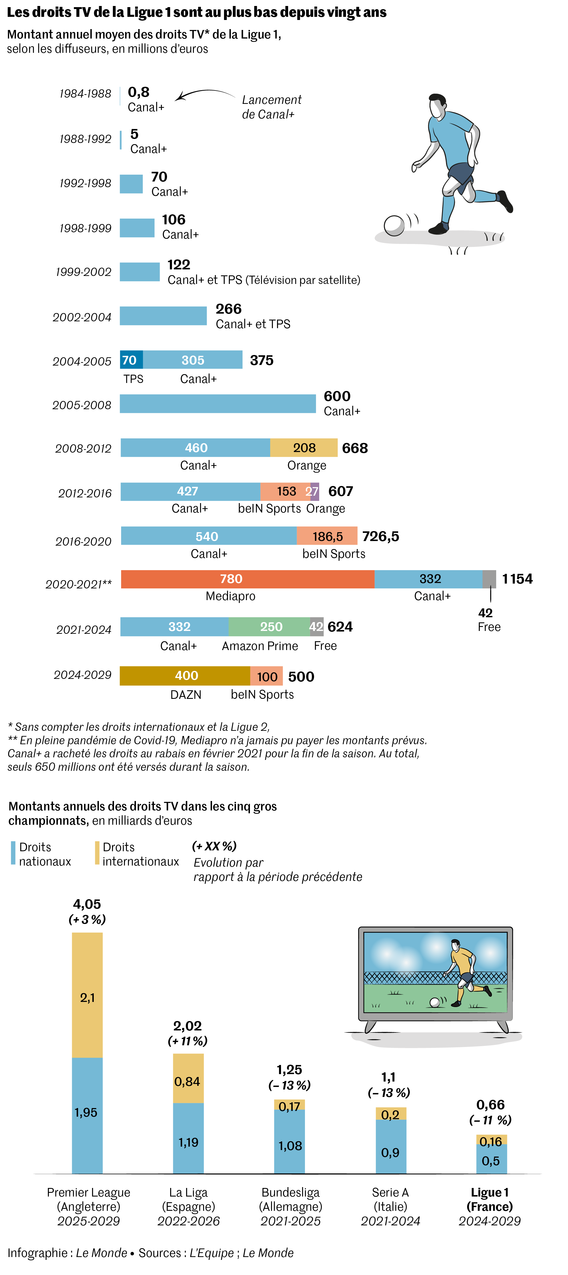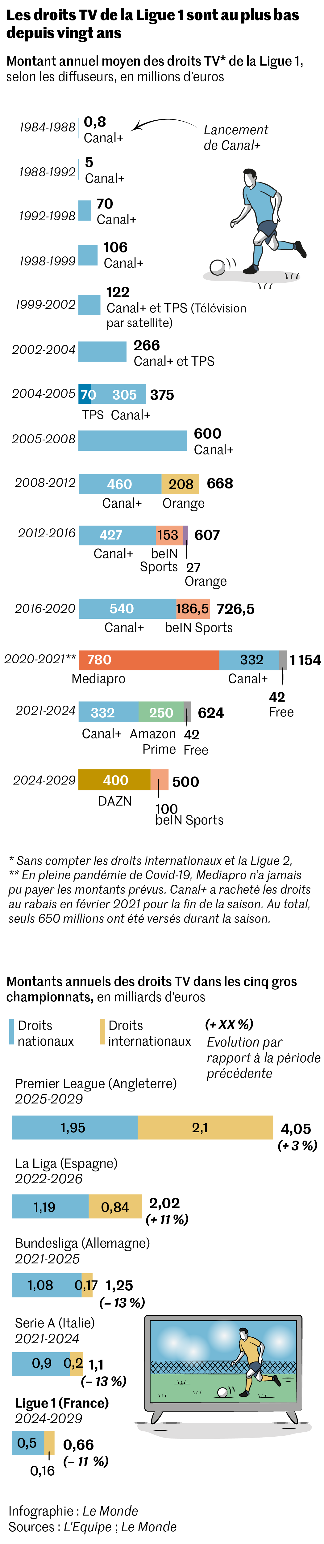Davantage un symbole qu’une vraie mesure,cette baisse intervient alors que d’autres nuages planent au-dessus de la LFP. D’abord,l’enquête préliminaire conduite par le Parquet national financier,qui vise à déterminer s’il y a eu un détournement de fonds publics lors de l’accord financier passé entre la LFP et le fonds d’investissement CVC Capital Partners en 2022. Ensuite,la mission d’informationdu Sénat sur la « financiarisation du football »,menée par Michel Savin (Les Républicains) et Laurent Lafon (Union centriste),qui arrive bientôt à sa conclusion. Elle doit rendre son rapport public fin octobre,voire début novembre.