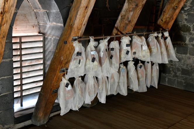 Les jambons Florus Solatium suspendus dans la cathédrale de Saint-Flour (Cantal),en juin 2022. HERVé CHELLé / LA MONTAGNE / MAXPPP C’est un drôle de dossier qui s’est invité sur le bureau de Rachida Dati ces derniers jours. La ministre de la culture va devoir se prononcer sur la question assez baroque des jambons Florus Solatium qui pendent depuis deux ans dans une tour de la cathédrale de Saint-Flour (Cantal). Comme l’a révélé le quotidien régional La Montagne,un représentant régional des architectes des bâtiments de France a récemment demandé leur retrait,en alertant sur plusieurs sujets : selon lui,la graisse du jambon détériorerait l’édifice et poserait des problèmes de sécurité en cas d’incendie.
