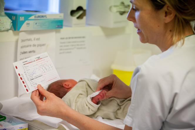 Une sage-femme vient de réaliser un test de Guthrie,qui doit se faire au troisième jour de la vie du bébé,à la maternité de Chambéry,le 2 janvier 2018. JESSICA BORDEAU / JESSICA BORDEAU / IMAGE POINT FR / BSIP Les associations de malades,les médecins et les chercheurs le réclamaient depuis plus de dix ans. Le dépistage néonatal de la drépanocytose est enfin une réalité. A compter du 1er novembre,tous les nouveau-nés vont en bénéficier dans le cadre du programme national de dépistage néonatal,qui recherchait systématiquement douze maladies,dont la mucoviscidose,l’hypothyroïdie congénitale et la leucinose (nommé également « maladie des urines à odeur de sirop d’érable »). Ce dépistage,appelé aussi « test de Guthrie »,est réalisé en prélevant des gouttes de sang sur un buvard,après une petite piqûre au talon ou à la main du nouveau-né.