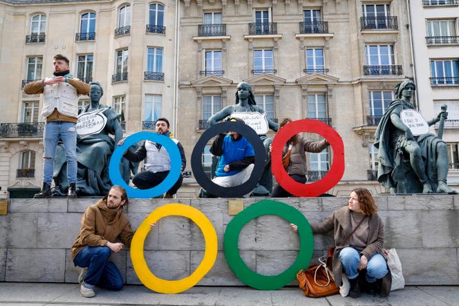 Des militants du collectif Le Revers de la médaille,lors d’une manifestation visant à attirer l’attention sur les inégalités sociales exacerbées par les Jeux olympiques 2024. A Paris,le 24 mars 2024. GEOFFROY VAN DER HASSELT / AFP Il y a un an presque jour pour jour,Le Revers de la médaille,collectif formé par une centaine d’associations de solidarité (Secours catholique,ATD Quart Monde…),interpellait les pouvoirs publics afin que les Jeux olympiques et paralympiques (JOP) de Paris 2024 ne pèsent pas sur les plus précaires et lèguent un héritage social positif.