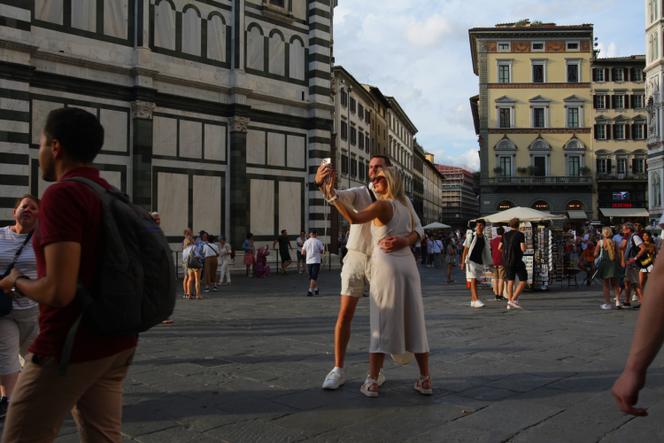 Devant la cathédrale Santa Maria del Fiore,dans le centre historique de Florence (Italie),le 11 septembre 2024. PAULO AMORIM / SIPA USA / REUTERS CONNECT L’objet est devenu le symbole de la transformation des centres-villes européens provoquée par les excès du tourisme. Une des cités les plus visitées du continent a décidé de les faire disparaître du paysage. Mardi 12 novembre,la maire de Florence,Sara Funaro (centre gauche),a annoncé l’interdiction,à partir de 2025,des boîtes à clés signalant des appartements utilisés pour des locations de courte durée.