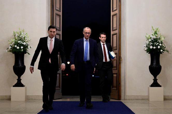 Friedrich Merz (au centre),dirigeant de la CDU,au château de Bellevue,siège de la présidence fédérale,à Berlin,le 12 novembre 2024. JOHN MACDOUGALL / VIA REUTERS Le prochain gouvernement allemand pourrait-il se réconcilier avec la dette,un mot si lourd de sens en allemand qu’il signifie à la fois endettement et culpabilité ? Friedrich Merz,le candidat conservateur de la CDU-CSU pour les élections législatives du 23 février 2025,et probable prochain chancelier,s’est montré ces derniers jours ouvert à l’idée d’une réforme du « frein à la dette »,cette disposition constitutionnelle à laquelle les conservateurs allemands sont traditionnellement attachés,et qui corsète le déficit budgétaire à 0,35 % du produit intérieur brut (PIB) hors effets de la conjoncture.