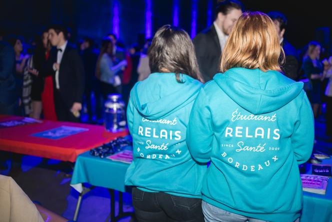 Des « étudiants relais santé » en intervention lors du gala Miage,le 25 mars 2022 à Bordeaux. KARL COSSE Léa Combe,23 ans,s’est installée derrière le bar. Elle est en master 2 à l’université de Bordeaux,mais aussi présidente de l’association des étudiants en productique. D’où sa casquette éphémère de barmaid. Mayana Seguettes,20 ans,en troisième année de licence de droit,lui commande un verre de rouge. A ses côtés,Sarah Dubois-Moueddene,21 ans,voudrait un Captain Morgan,un rhum des Caraïbes,mais il n’y a aucun « soft » pour diluer…