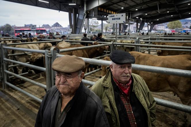 Des négociants au marché aux bestiaux,à Laissac-Sévérac-l’Eglise (Aveyron),le 19 novembre 2024. BALINT PORNECZI POUR « LE MONDE » Le jour se lève à peine et les meuglements résonnent déjà dans les travées de la grande halle semi-ouverte. Depuis 6 h 30,des dizaines de veaux,vaches,taureaux ont pris place dans leurs box métalliques. Déchargés par des camions en provenance d’une vingtaine de départements du Sud-Ouest,les animaux destinés à la boucherie ou les veaux qui partiront à l’engraissement sont prêts,parqués,pour le rituel hebdomadaire.