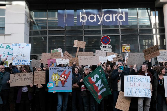« Pas de réacs dans nos rédacs,pas de fachos dans nos locaux »,entonnaient 200 à 300 salariés devant le site de Bayard à Montrouge (Hauts-de-Seine),jeudi 28 novembre en début d’après-midi,pendant une heure de débrayage,avant une possible grève début décembre. Du jamais-vu,selon plusieurs salariés,presque surpris par la vigueur de la mobilisation dans un groupe de presse qui n’a pas la culture de l’affrontement.
