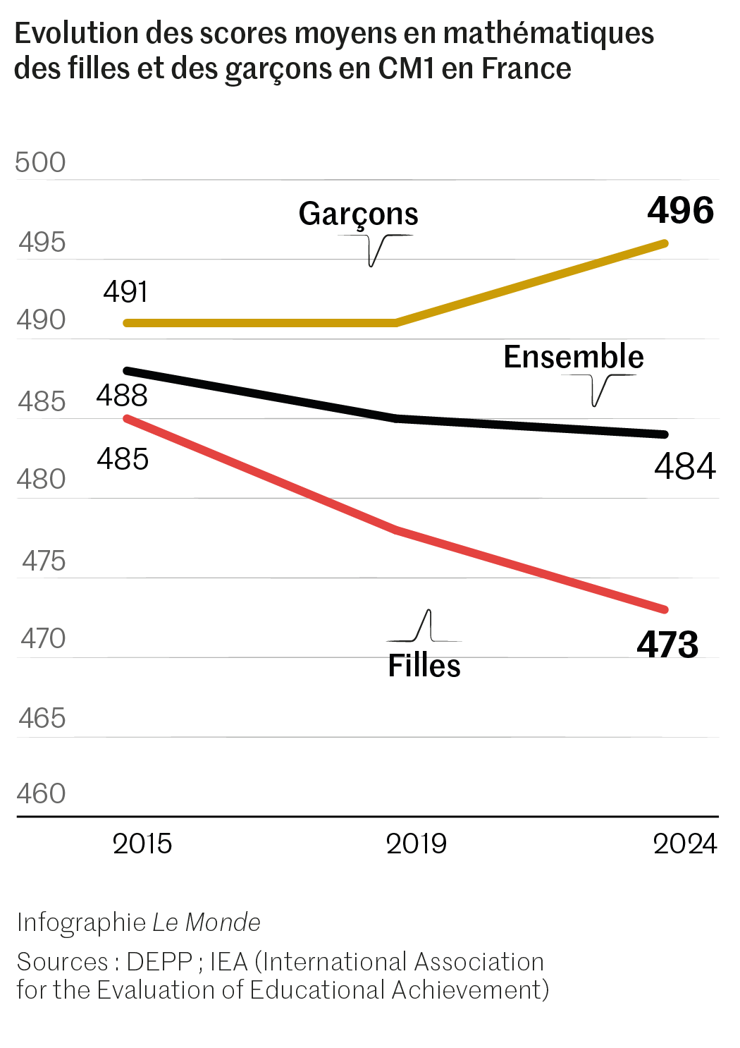 Ces conclusions rejoignent celles des évaluations nationales,passées à chaque début d’année d’école élémentaire puis en classe de 6e,4e et 2de. Entre 2017 et 2024,les écarts filles-garçons se sont creusés,en 6e notamment : alors que le score moyen des filles reste stable,celui des garçons augmente de 7 points. « Dans les années 2010,les différentes études ne montraient pourtant pas d’écart significatif entre les filles et les garçons »,note Clémence Perronnet,sociologue et coautrice de l’ouvrage Matheuses. Les filles,avenir des mathématiques (CNRS Editions,240 pages,24 euros).