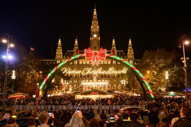 Les illuminations du marché de Noël installé devant l’hôtel de ville de Vienne,le 16 novembre 2024. CHRISTIAN BRUNA / AP A voir le nombre de bus qui stationnent le long du Ring,le boulevard qui encercle le centre-ville de Vienne,il y a fort à parier que la saison 2024 des marchés de Noël soit à nouveau de très bonne facture dans la capitale autrichienne. Les stands à vin chaud et les cabanons de bibelots ne désemplissent pas de touristes venus de toute l’Europe pour profiter de « la ville mondiale de Noël » ainsi que l’a rebaptisée la chambre du commerce dans son communiqué du lancement de la saison,mi-novembre.