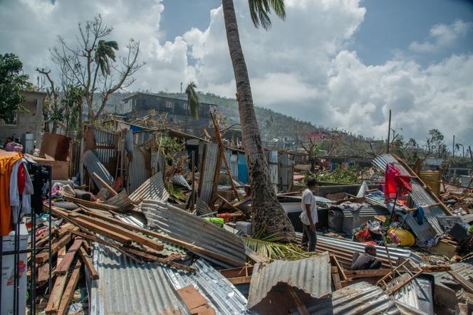 Après le passage du cyclone Chido sur le territoire de l’océan Indien de Mayotte,le 14 décembre 2024,dans le quartier de Bandrajou Kaweni de la capitale Mamoudzou. LEMOR DAVID / LEMOR DAVID/ABACA Kawéni a été pulvérisé,rasé de la surface de la terre. Là où se dressait il y a encore quelques jours une ville de « bangas » – des cases précaires –,il ne reste plus que des collines chauves,des amas épars de bois et de tôles enchevêtrés,sur plusieurs kilomètres carrés.