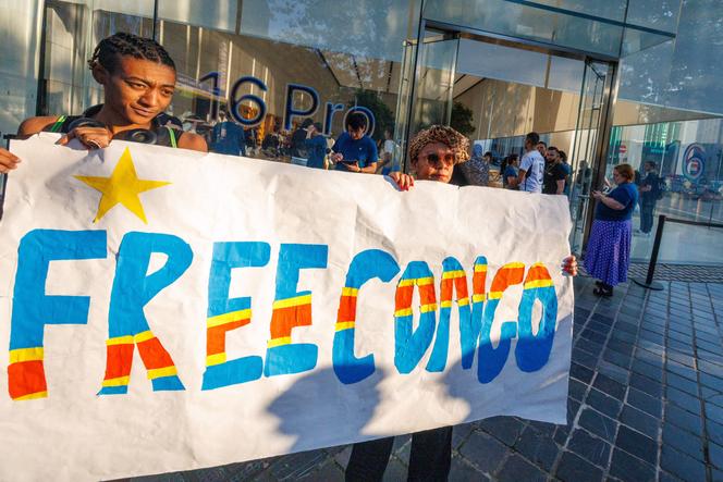 Manifestation pro-congolaise devant un Apple Store de Bruxelles,le 20 septembre 2024. OLIVIER MATTHYS / EPA / MAXPPP « Si vous voulez être sûr de ne pas donner de minerais de sang à Noël,la meilleure chose à faire est d’offrir des… pommes ! »,ironise l’avocat Robert Amsterdam,dont le cabinet Amsterdam & Partners,associé à un collectif d’avocats,a déposé plainte,lundi 16 décembre,en France et devrait faire de même,mardi,en Belgique au nom de la République démocratique du Congo (RDC) contre Apple pour recel de crimes de guerre,blanchiment de faux et tromperie des consommateurs.