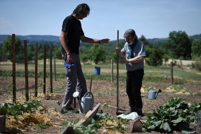 Nicolas Brassart,animateur d’un atelier de jardinage,avec un patient de « La Clé des Champs »,un hôpital de jour pour personnes souffrant de troubles psychiatriques,dans un potager,à Gabriac (Aveyron),le 2 juin 2022. VALENTINE CHAPUIS / AFP L’hiver,ils sont évidemment déserts. Mais dès qu’ils reverdissent,les visites refleurissent. Sous leurs frondaisons,auprès de leurs arbustes et de leurs parterres,les patients et leurs familles mais aussi le personnel soignant trouvent là un lieu d’apaisement et de ressourcement. De quoi se délester,pour quelques heures au moins,du poids du stress et de l’anxiété.