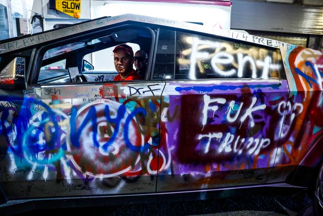Un Cybertruck,de Tesla,le jour de l’élection présidentielle américaine,à New York,le 5  novembre  2024. KENA BETANCUR / GETTY IMAGES NORTH AMERICA / GETTY IMAGES VIA AFP « Cette voiture est formidable,mais je vais la revendre. » Croisé un vendredi soir sur la station de recharge de l’aire de La Réserve (Yonne),sur l’autoroute A6,ce propriétaire d’une Tesla Model 3 blanche,« adepte de la voiture électrique par conviction »,laisse libre cours à une colère froide contre Elon Musk. « Entre son soutien à Trump et son espèce de salut nazi,c’est allé crescendo,ces derniers temps. Alors,pas question que je continue,même indirectement,à donner de l’argent à ce personnage dont je ne veux plus entendre parler »,déclare-t-il avant de reprendre place,sourcils froncés,derrière le volant,en attendant que sa voiture ait récupéré suffisamment d’autonomie pour continuer sa route vers les sports d’hiver.