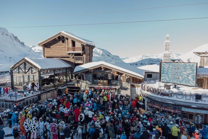 L’établissement « La Folie Douce » de la station de ski de Val d’Isère,en 2024. LOUIS RAUX-DEFOSSEZ/LA FOLIE DOUCE Sur les pistes,on identifie facilement les « Folie douce ». « Il y a un côté surréaliste. Tu es en train de skier et,tout à coup,ce truc apparaît. La musique est à fond,il y a la foule. C’est comme une sorte de parc d’attractions,avec des lumières de partout,des gens qui dansent en plein après-midi. Ils ont même un système où le champagne arrive par tyrolienne ! »,explique Arthur (qui n’a pas communiqué son nom de famille),étudiant de 19 ans,qui travaille comme saisonnier à Méribel (Savoie). Dans ces boîtes de nuit à ciel ouvert,des artistes effectuent des numéros de cabaret ou de cirque dans des déguisements extravagants. A l’intérieur,de grandes tablées de skieurs commandent des plats roboratifs et coûteux : à Val-d’Isère,le cheeseburger est à 32 euros.