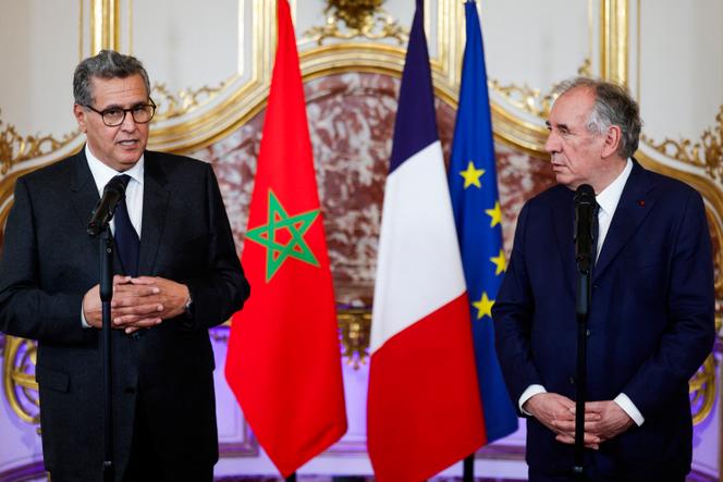 Le chef du gouvernement marocain,Aziz Akhannouch,et le premier ministre français,François Bayrou,à l’hôtel Matignon,le 22 février 2025. GEOFFROY VAN DER HASSELT/AFP Selon une source proche du dossier,la réaction marocaine a été « extrêmement rapide,de l’ordre de quelques heures ». Dimanche 23 février,sur demande française,Alan G. et Albinou D. sont interpellés à Marrakech. Les deux ressortissants français sont soupçonnés d’être les complices de Mohamed Amra,arrêté la veille à Bucarest,au terme de neuf mois de cavale. L’évasion du narcotrafiquant,lors de l’attaque du fourgon qui le transportait entre la prison d’Evreux et le tribunal de Caen,le 14 mai 2024,avait coûté la vie à deux agents pénitentiaires,faisant du fugitif l’homme le plus recherché de France.