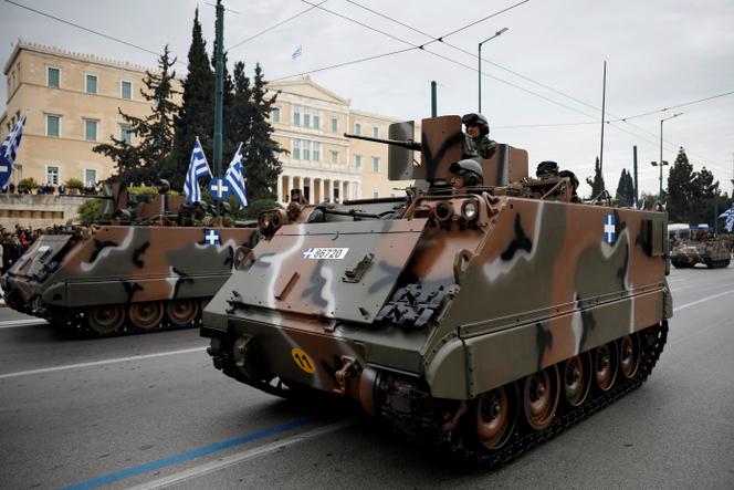Des véhicules blindés lors du défilé militaire marquant le jour de l’indépendance de la Grèce,à Athènes,le 25 mars 2025. LOUIZA VRADI / REUTERS La République hellénique n’a pas attendu la guerre en Ukraine ni le plan de défense européen pour investir massivement dans ses forces armées. Mercredi 2 avril,elle a confirmé cette préférence pour la dépense militaire. C’est en effet,ce jour,que le premier ministre conservateur,Kyriakos Mitsotakis,et son ministre des armées,Nikos Dendias,ont présenté devant le Parlement hellénique,leur ambitieuse réforme de la défense nationale,qui prend forme à travers un programme d’investissement de 25 milliards d’euros sur douze ans (2025-2036).