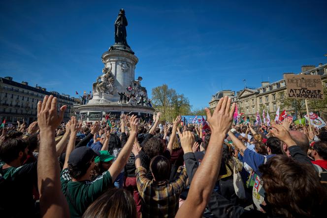 Lors d’un rassemblement contre l’extrême droite,organisé par La France insoumise et Les Ecologistes,place de la République,à Paris,le 6 avril 2025. KIRAN RIDLEY / AFP Un deuxième round,et moins de divisions ? Samedi 12 avril,c’est au tour de la société civile de gauche d’appeler à un rassemblement place de la République,à Paris. Une mobilisation pour défendre l’Etat de droit et l’institution judiciaire,ciblés par l’extrême droite et une partie de la droite depuis la condamnation de Marine Le Pen – pour laquelle elle a fait appel – à quatre ans de prison et cinq ans d’inéligibilité avec exécution provisoire pour détournement de fonds publics,le 31 mars.