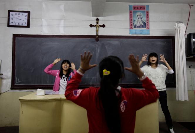 Dans une école catholique à Liuhe,dans la province du Shanxi,en Chine,en septembre 2011. JASON LEE / REUTERS Quelques heures seulement séparent l’élection du pape François,le 13 mars 2013,de celle de Xi Jinping à la présidence de la République populaire de Chine,le 14. Le Vatican entretenant des relations diplomatiques avec Taïwan,et Pékin ayant expulsé,en 1951,le nonce apostolique,les deux hommes ne se sont jamais rencontrés. Pourtant,le pape argentin n’a jamais fait mystère de vouloir se rapprocher de Pékin. Se rendant en Corée du Sud en octobre 2014,il fut autorisé à survoler l’espace aérien chinois. Une licence que n’avait pas reçue Jean Paul II,en 1999,lors de la précédente visite d’un pape en Asie. A cette occasion,François a envoyé un message radio à Xi Jinping. « En entrant dans l’espace aérien chinois,je présente mes meilleurs vœux à votre excellence et à vos concitoyens. J’appelle les bénédictions divines de la paix et du bien-être sur le pays. »
