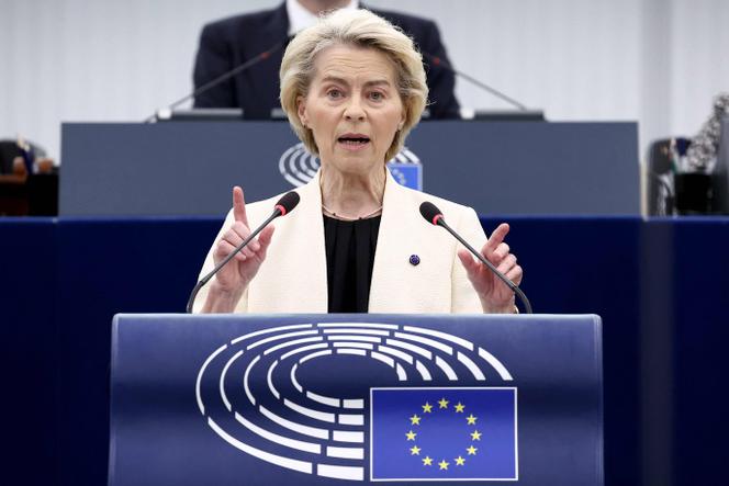 La présidente de la Commission européenne,Ursula von der Leyen,au Parlement européen,à Strasbourg,le 7 mai 2025. FREDERICK FLORIN / AFP Face aux hausses des droits de douane américains,les Européens avancent avec une grande prudence. Et une obsession : préserver leur unité si fragile,tant les intérêts économiques et sécuritaires en jeu sont importants.