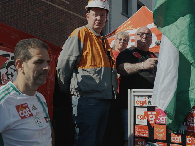 Gaëtan Lecocq,secrétaire général CGT d'ArcelorMittal Dunkerque (au centre),Christelle Veignie,secrétaire générale de l'union locale CGT Dunkerque,et Jean Paul Delescaut,secrétaire général de l'UD-CGT du Nord Dunkerque,lors d’un rassemblement en soutien aux salariés d’ArcelorMittal,à Dunkerque,le 1ᵉʳ mai 2025. AIMÉE THIRION POUR « LE MONDE » « C’est le même cauchemar qui recommence. » Pour Edouard Martin,l’ancien délégué du personnel de la CFDT qui avait pris la tête de la lutte contre la direction d’ArcelorMittal à Florange en 2012,« l’histoire se répète encore et encore ».