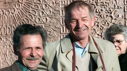 Raymond Mis (à droite) et Gabriel Thiennot (à gauche),le 16 décembre 1988,à Lyon. (JEAN-MARIE HURON / AFP)